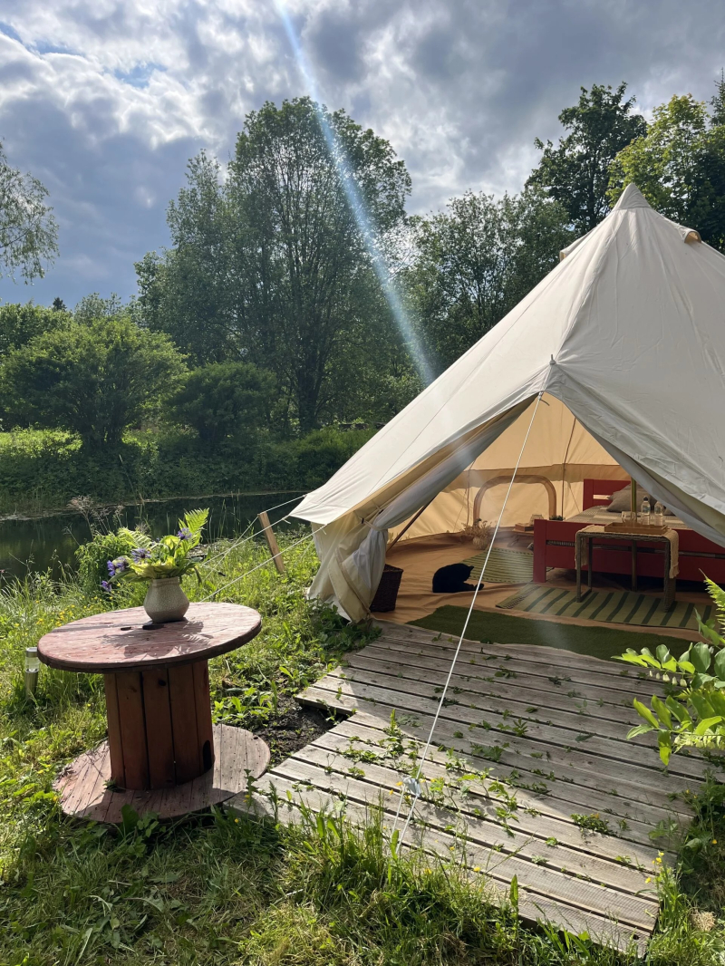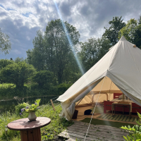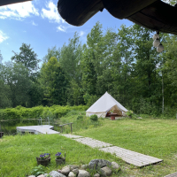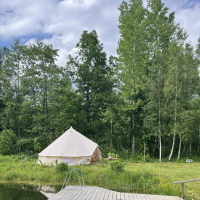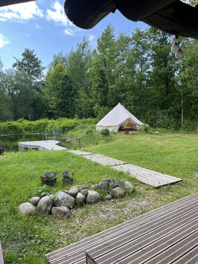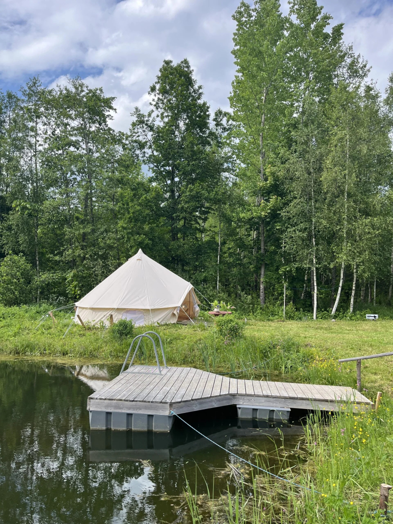 Maist septembrini, pakume majutust suures glämpingu telgis metsa servas, tiigi kaldal (teistest talu hoonetest eemal).