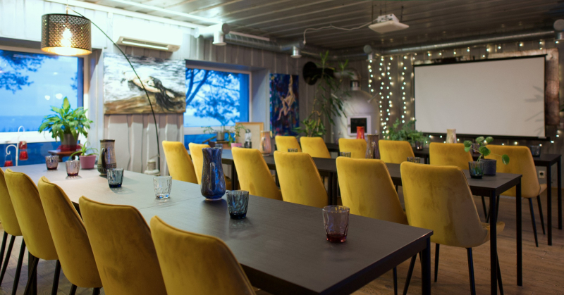 - Majakasaal (Lighthouse Hall), 70 m²: Theatre style – up to 40 people. Captain’s table – up to 16 people. U-shape – up to 20 people. Classroom – up to 30 people.