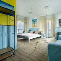 - The small harbour hotel offers cozy rooms accommodating up to 12 guests, making it an ideal choice for groups of friends, families, small seminars, event organizers, and nature lovers. During your stay, you can relax in the comfortable Majakasaal lounge, where complimentary coffee and tea are always available. It’s a welcoming space for playing board games with friends or getting some quiet work done on your laptop.